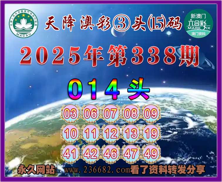 338期:《天降澳彩》 🥼③头⒂码🥼【014头】开:08