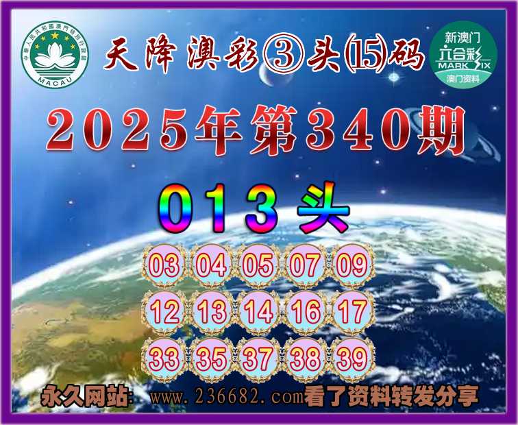 340期:《天降澳彩》 🥼③头⒂码🥼【013头】开:16