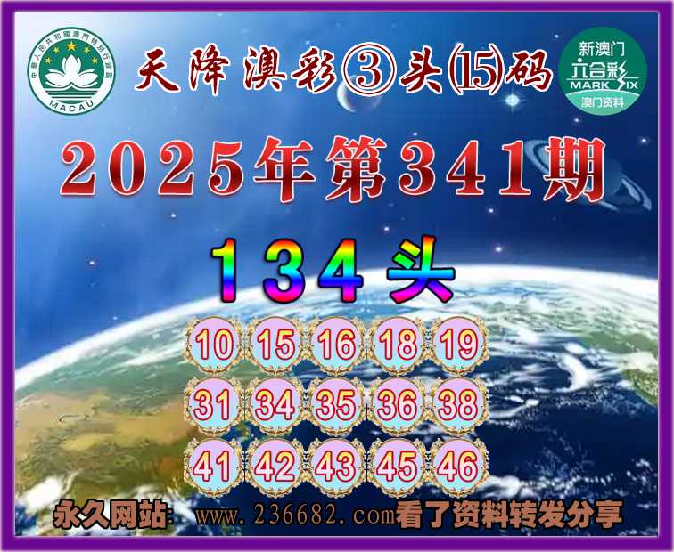 341期:《天降澳彩》 🥼③头⒂码🥼【134头】开:06